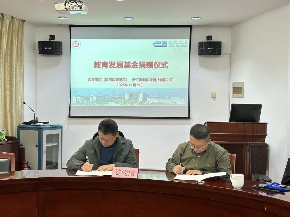 仪式上,双方正式签署教育发展基金捐赠协议,浙江博越教育科技有限公司负责人向湖州师范学院(中校区)教师教育学院下载党委书记沈江龙现场移交赠书,以实际行动支持学院教育事业发展。随后,双方圆满完成大学生就业基地签约暨授牌仪式,标志着校企双方在人才培养、实习就业等领域的合作步入实质性阶段。