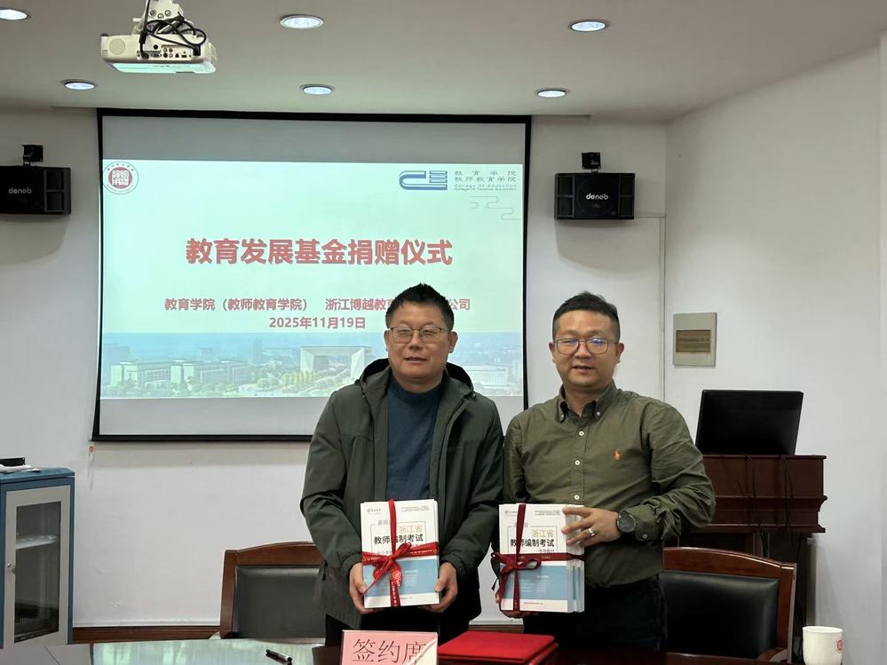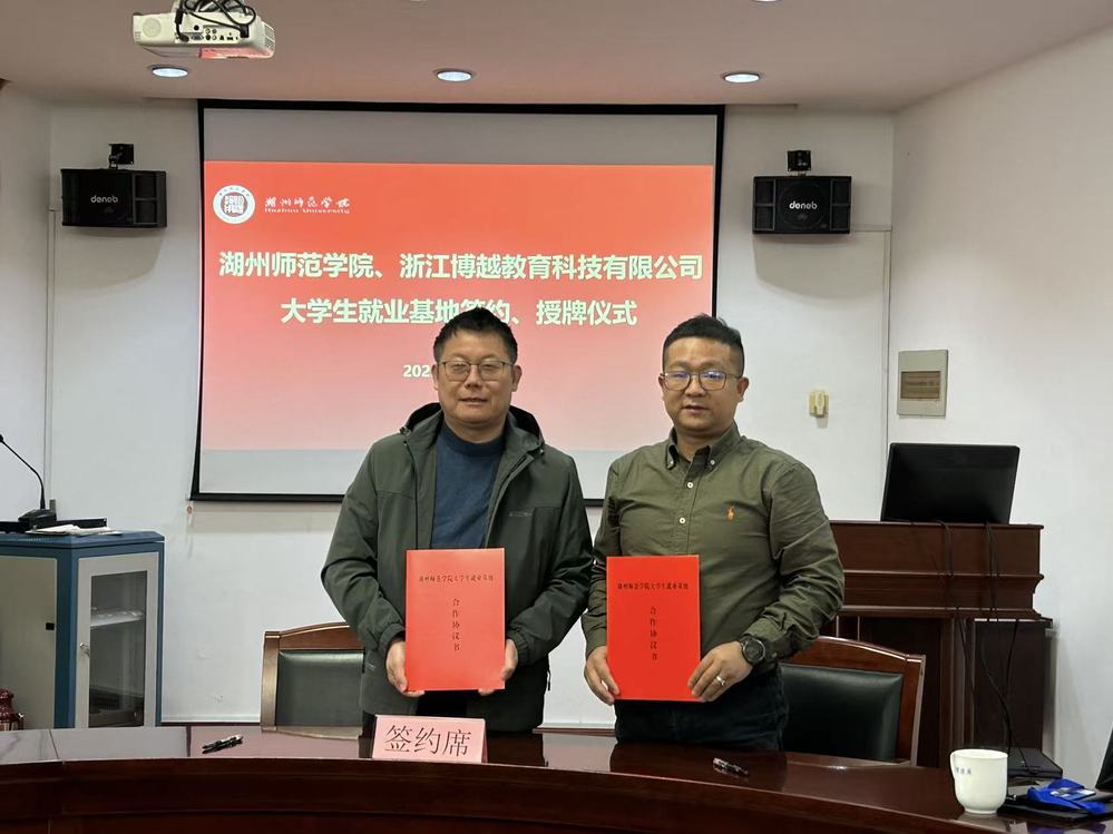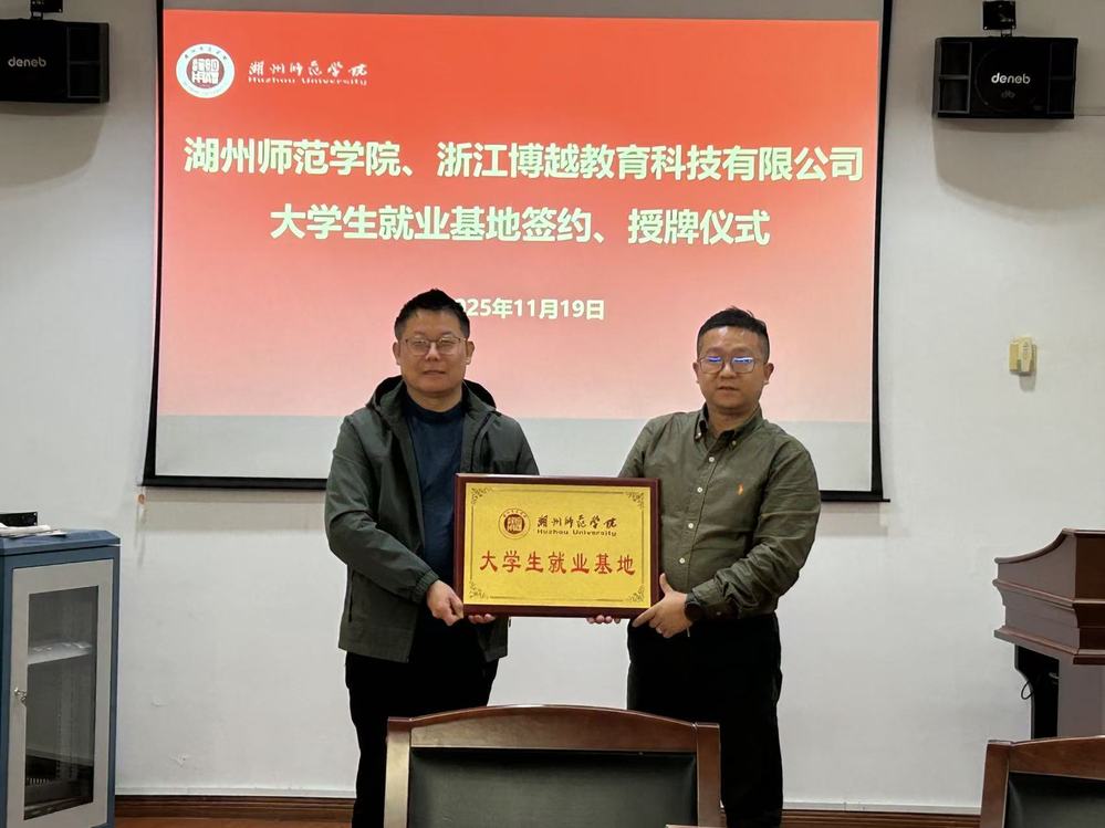 仪式上,双方正式签署教育发展基金捐赠协议,浙江博越教育科技有限公司负责人向湖州师范学院(中校区)教师教育学院下载党委书记沈江龙现场移交赠书,以实际行动支持学院教育事业发展。随后,双方圆满完成大学生就业基地签约暨授牌仪式,标志着校企双方在人才培养、实习就业等领域的合作步入实质性阶段。